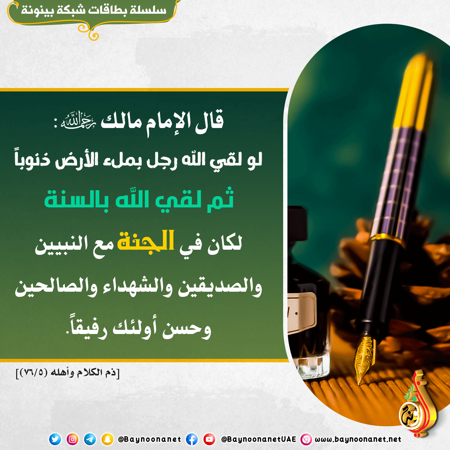 قال الإمام مالك - رحمه الله -: ( لو لقي الله رجل بملء الأرض ذنوبا ... ) تاريخ الإضافة: الإثنين, 23/05/2022 - 16:58 التصنيفات صنف البطاقة: إيمانيات الشيخ: من إعداد شبكة بينونة