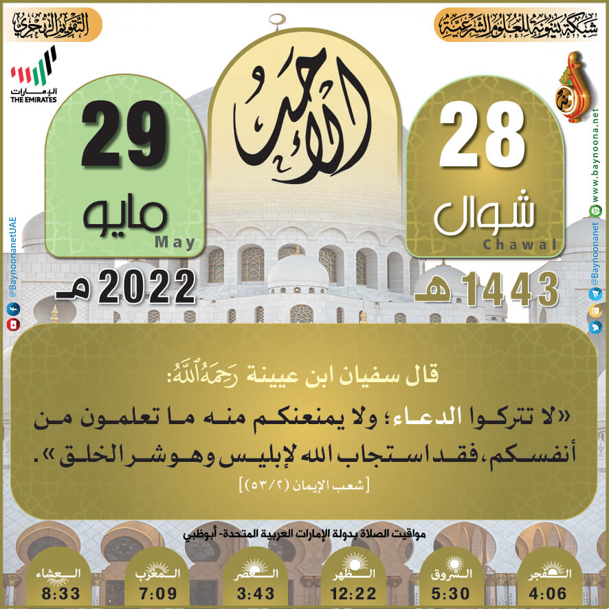 التقويم الهجري لعام ١٤٤٣ هـ - الأحد ٢٨ شوال تاريخ الإضافة: السبت, 28/05/2022 - 21:13 التصنيفات صنف البطاقة: عامة الشيخ: من إعداد شبكة بينونة سلسلة بطاقات: التقويم الهجري لعام ١٤٤٣هـ حمل السلسلة كاملة: التقويم الهجري لعام ١٤٤٣ هـ - شهر المحرم حمل السلسلة كاملة: التقويم الهجري لعام ١٤٤٣ هـ - شهر صفر حمل السلسلة كاملة: التقويم الهجري لعام ١٤٤٣ هـ - شهر ربيع الأول حمل السلسلة كاملة: التقويم الهجري لعام ١٤٤٣ هـ - شهر ربيع الثاني حمل السلسلة كاملة: التقويم الهجري لعام ١٤٤٣ هـ - شهر جمادى الأولى حمل السلسلة كاملة: التقويم الهجري لعام ١٤٤٣ هـ - شهر جمادى الآخرة حمل السلسلة كاملة: التقويم الهجري لعام ١٤٤٣ هـ - شهر رجب حمل السلسلة كاملة: التقويم الهجري لعام ١٤٤٣ هـ - شهر شعبان حمل السلسلة كاملة: التقويم الهجري لعام ١٤٤٣ هـ - شهر رمضان حمل السلسلة كاملة: التقويم الهجري لعام ١٤٤٣ هـ - شهر شوال حمل السلسلة كاملة: التقويم الهجري لعام ١٤٤٣ هـ - شهر ذو القعدة حمل السلسلة كاملة: التقويم الهجري لعام ١٤٤٣ هـ - شهر ذو الحجة