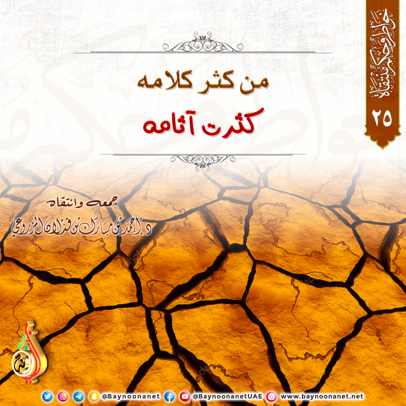 خواطر وحكم منتقاة - (٢٥) من كثر كلامه كثرة آثامه تاريخ الإضافة: السبت, 11/06/2022 - 20:49 التصنيفات صنف البطاقة: الأخلاق والآداب الشيخ: د. أحمد بن مبارك المزروعي سلسلة بطاقات: خواطر وحكم منتقاة حمل السلسلة كاملة: خواطر وحكم منتقاة