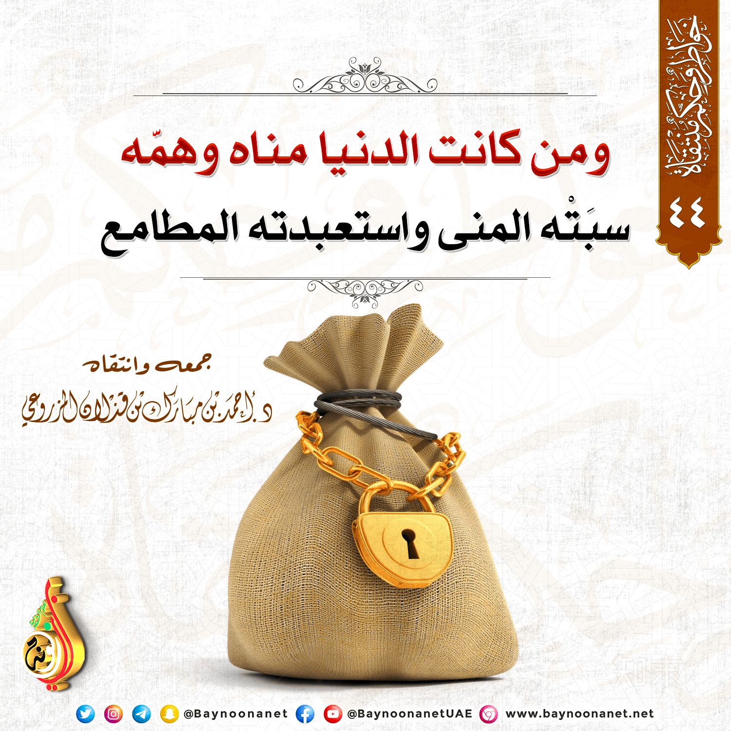 خواطر وحكم منتقاة - (٤٤) من كانت الدنيا مناه وهمه تاريخ الإضافة: الخميس, 28/07/2022 - 20:18 التصنيفات صنف البطاقة: إيمانيات صنف البطاقة: الأخلاق والآداب الشيخ: د. أحمد بن مبارك المزروعي سلسلة بطاقات: خواطر وحكم منتقاة حمل السلسلة كاملة: خواطر وحكم منتقاة