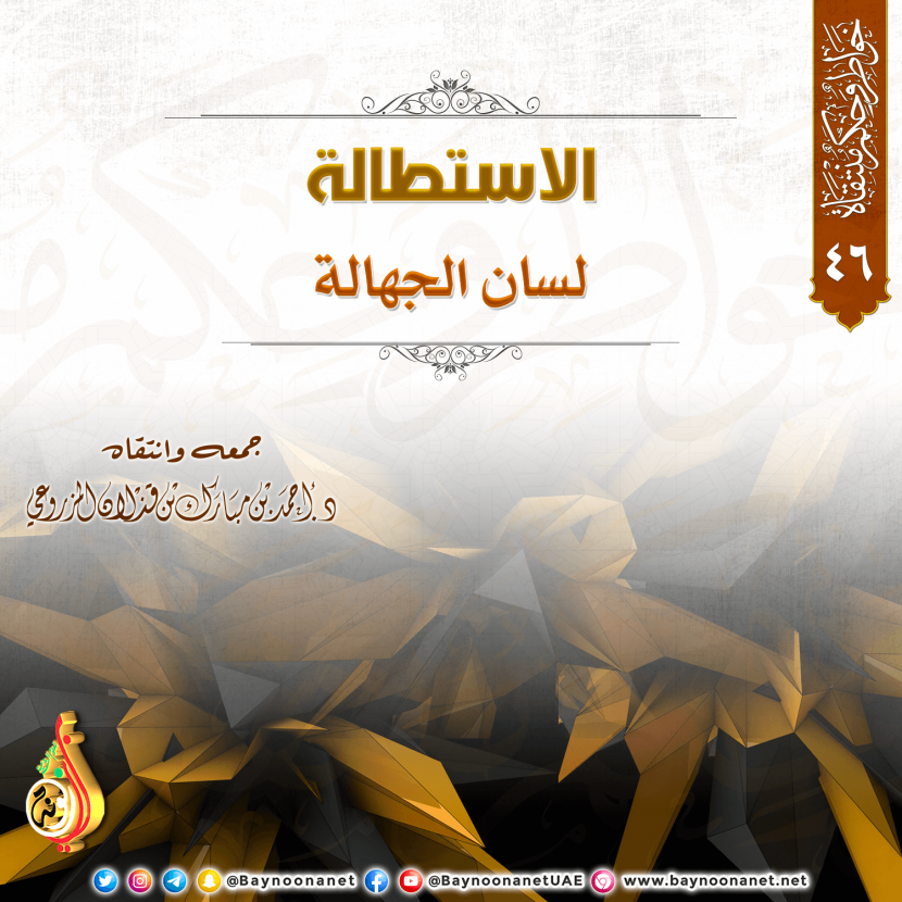 خواطر وحكم منتقاة - (٤٦) الاستطالة لسان الجهالة تاريخ الإضافة: الأحد, 07/08/2022 - 18:04 التصنيفات صنف البطاقة: الأخلاق والآداب الشيخ: د. أحمد بن مبارك المزروعي سلسلة بطاقات: خواطر وحكم منتقاة حمل السلسلة كاملة: خواطر وحكم منتقاة