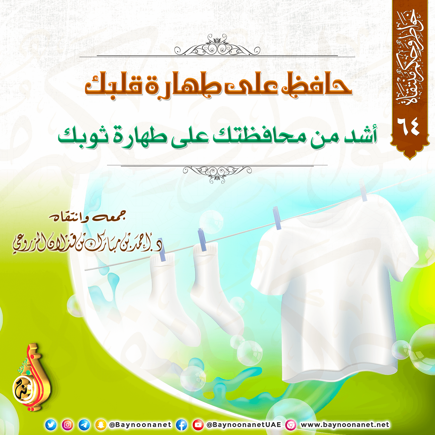 خواطر وحكم منتقاة - (٦٤) حافظ على طهارة قلبك تاريخ الإضافة: الأحد, 28/08/2022 - 18:51 التصنيفات صنف البطاقة: إيمانيات الشيخ: د. أحمد بن مبارك المزروعي سلسلة بطاقات: خواطر وحكم منتقاة حمل السلسلة كاملة: خواطر وحكم منتقاة
