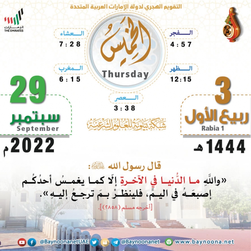 التقويم الهجري لعام ١٤٤٤ هـ - الخميس ٠٣ ربيع الأول تاريخ الإضافة: الخميس, 29/09/2022 - 12:17 التصنيفات صنف البطاقة: عامة الشيخ: من إعداد شبكة بينونة سلسلة بطاقات: التقويم الهجري لعام ١٤٤٤هـ حمل السلسلة كاملة: التقويم الهجري لعام ١٤٤٤ هـ - شهر المحرم حمل السلسلة كاملة: التقويم الهجري لعام ١٤٤٤ هـ - شهر صفر حمل السلسلة كاملة: التقويم الهجري لعام ١٤٤٤ هـ - شهر ربيع الأول حمل السلسلة كاملة: التقويم الهجري لعام ١٤٤٤ هـ - شهر ربيع الآخر حمل السلسلة كاملة: التقويم الهجري لعام ١٤٤٤ هـ - شهر جمادى الآخرة حمل السلسلة كاملة: التقويم الهجري لعام ١٤٤٤ هـ - شهر شعبان حمل السلسلة كاملة: التقويم الهجري لعام ١٤٤٤ هـ - شهر رمضان حمل السلسلة كاملة: التقويم الهجري لعام ١٤٤٤ هـ - شهر شوال حمل السلسلة كاملة: التقويم الهجري لعام ١٤٤٤ هـ - شهر ذو القعدة حمل السلسلة كاملة: التقويم الهجري لعام ١٤٤٤ هـ - لشهر ذو الحجة