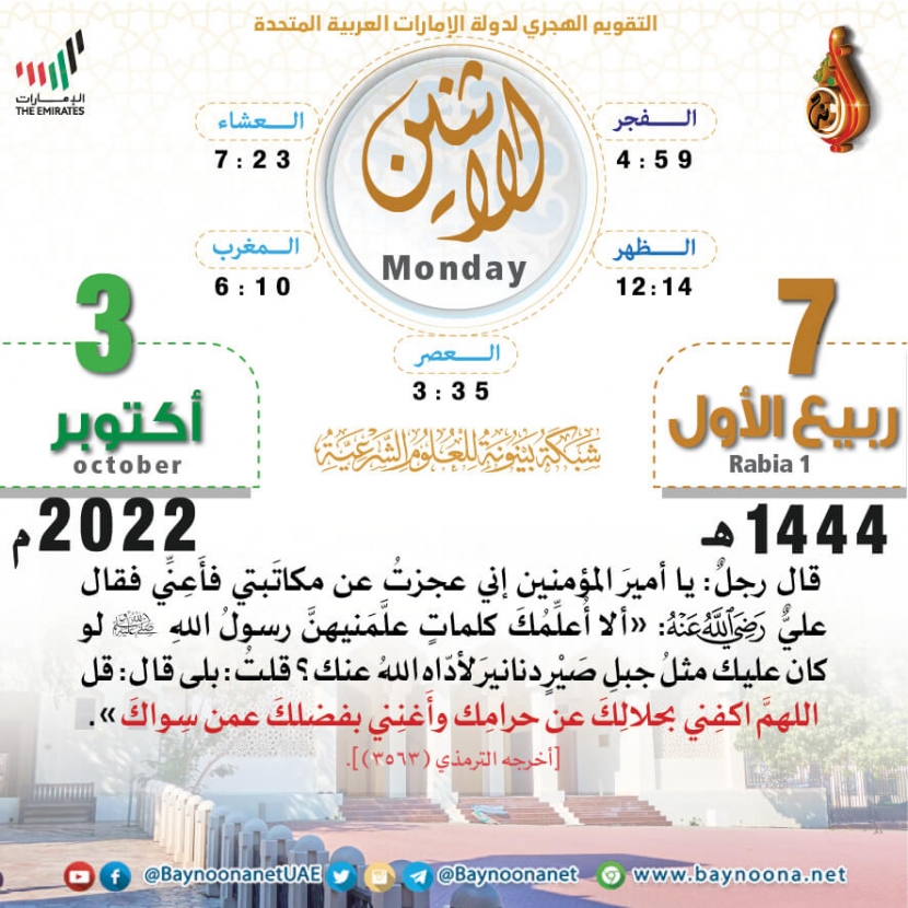 التقويم الهجري لعام ١٤٤٤ هـ - الاثنين ٠٧ ربيع الأول تاريخ الإضافة: الأحد, 02/10/2022 - 21:54 التصنيفات صنف البطاقة: عامة الشيخ: من إعداد شبكة بينونة سلسلة بطاقات: التقويم الهجري لعام ١٤٤٤هـ حمل السلسلة كاملة: التقويم الهجري لعام ١٤٤٤ هـ - شهر المحرم حمل السلسلة كاملة: التقويم الهجري لعام ١٤٤٤ هـ - شهر صفر حمل السلسلة كاملة: التقويم الهجري لعام ١٤٤٤ هـ - شهر ربيع الأول حمل السلسلة كاملة: التقويم الهجري لعام ١٤٤٤ هـ - شهر ربيع الآخر حمل السلسلة كاملة: التقويم الهجري لعام ١٤٤٤ هـ - شهر جمادى الآخرة حمل السلسلة كاملة: التقويم الهجري لعام ١٤٤٤ هـ - شهر شعبان حمل السلسلة كاملة: التقويم الهجري لعام ١٤٤٤ هـ - شهر رمضان حمل السلسلة كاملة: التقويم الهجري لعام ١٤٤٤ هـ - شهر شوال حمل السلسلة كاملة: التقويم الهجري لعام ١٤٤٤ هـ - شهر ذو القعدة حمل السلسلة كاملة: التقويم الهجري لعام ١٤٤٤ هـ - لشهر ذو الحجة