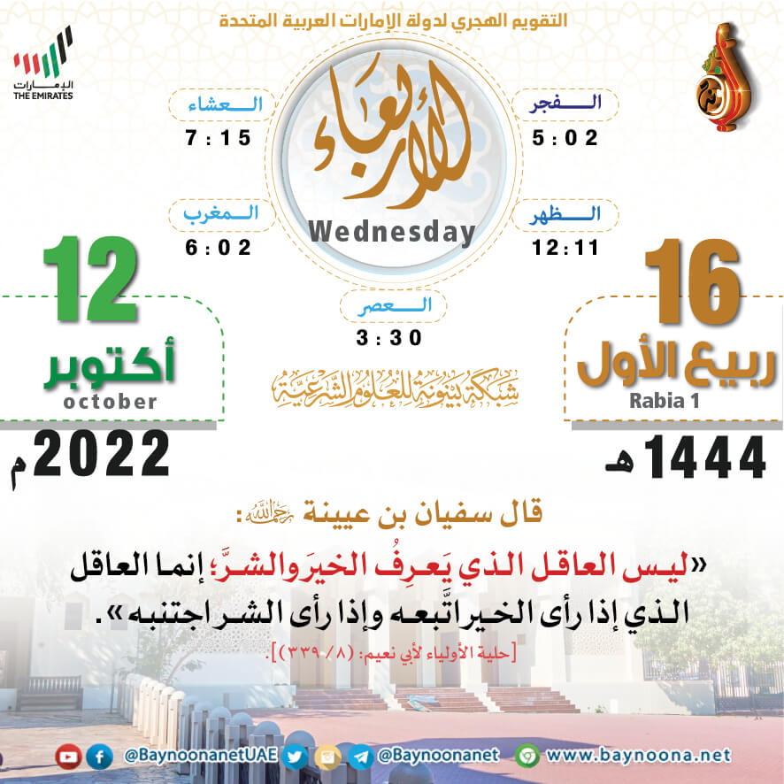 التقويم الهجري لعام ١٤٤٤ هـ - الأربعاء ١٦ ربيع الأول تاريخ الإضافة: الأربعاء, 12/10/2022 - 00:47 التصنيفات صنف البطاقة: عامة الشيخ: من إعداد شبكة بينونة سلسلة بطاقات: التقويم الهجري لعام ١٤٤٤هـ حمل السلسلة كاملة: التقويم الهجري لعام ١٤٤٤ هـ - شهر المحرم حمل السلسلة كاملة: التقويم الهجري لعام ١٤٤٤ هـ - شهر صفر حمل السلسلة كاملة: التقويم الهجري لعام ١٤٤٤ هـ - شهر ربيع الأول حمل السلسلة كاملة: التقويم الهجري لعام ١٤٤٤ هـ - شهر ربيع الآخر حمل السلسلة كاملة: التقويم الهجري لعام ١٤٤٤ هـ - شهر جمادى الآخرة حمل السلسلة كاملة: التقويم الهجري لعام ١٤٤٤ هـ - شهر شعبان حمل السلسلة كاملة: التقويم الهجري لعام ١٤٤٤ هـ - شهر رمضان حمل السلسلة كاملة: التقويم الهجري لعام ١٤٤٤ هـ - شهر شوال حمل السلسلة كاملة: التقويم الهجري لعام ١٤٤٤ هـ - شهر ذو القعدة حمل السلسلة كاملة: التقويم الهجري لعام ١٤٤٤ هـ - لشهر ذو الحجة