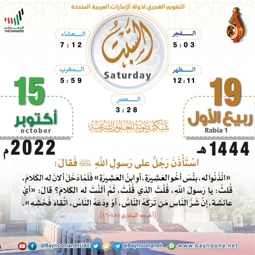 التقويم الهجري لعام ١٤٤٤ هـ - السبت ١٩ ربيع الأول تاريخ الإضافة: الجمعة, 14/10/2022 - 19:37 التصنيفات صنف البطاقة: عامة الشيخ: من إعداد شبكة بينونة سلسلة بطاقات: التقويم الهجري لعام ١٤٤٤هـ حمل السلسلة كاملة: التقويم الهجري لعام ١٤٤٤ هـ - شهر المحرم حمل السلسلة كاملة: التقويم الهجري لعام ١٤٤٤ هـ - شهر صفر حمل السلسلة كاملة: التقويم الهجري لعام ١٤٤٤ هـ - شهر ربيع الأول حمل السلسلة كاملة: التقويم الهجري لعام ١٤٤٤ هـ - شهر ربيع الآخر حمل السلسلة كاملة: التقويم الهجري لعام ١٤٤٤ هـ - شهر جمادى الآخرة حمل السلسلة كاملة: التقويم الهجري لعام ١٤٤٤ هـ - شهر شعبان حمل السلسلة كاملة: التقويم الهجري لعام ١٤٤٤ هـ - شهر رمضان حمل السلسلة كاملة: التقويم الهجري لعام ١٤٤٤ هـ - شهر شوال حمل السلسلة كاملة: التقويم الهجري لعام ١٤٤٤ هـ - شهر ذو القعدة حمل السلسلة كاملة: التقويم الهجري لعام ١٤٤٤ هـ - لشهر ذو الحجة