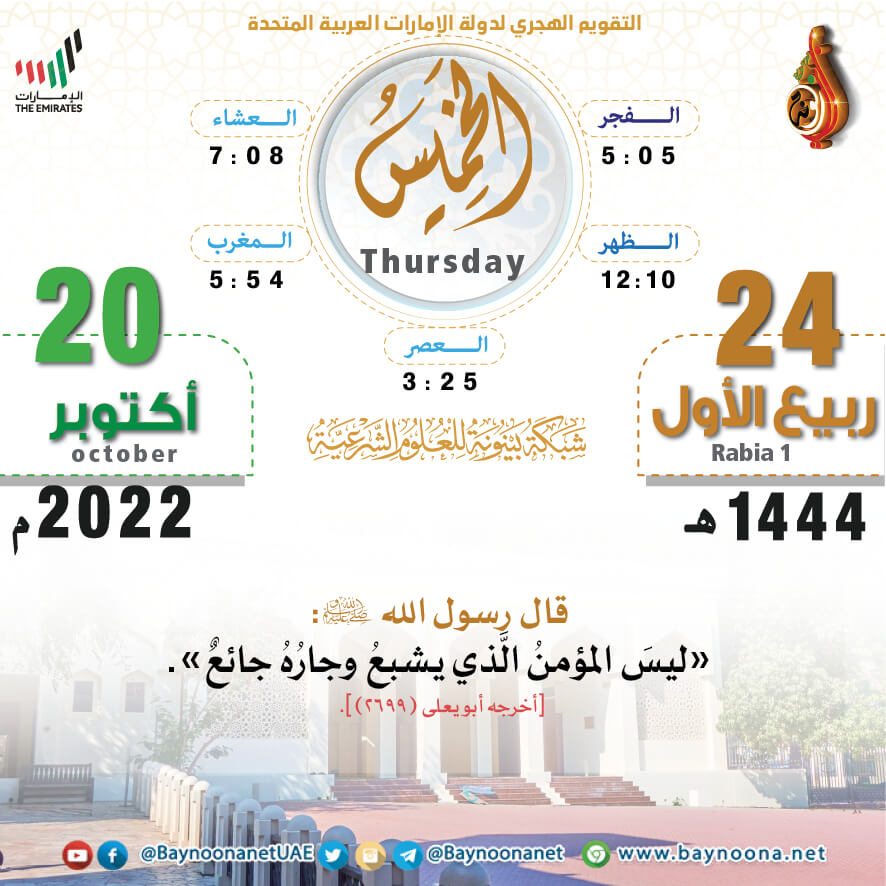 التقويم الهجري لعام ١٤٤٤ هـ - الخميس ٢٤ ربيع الأول تاريخ الإضافة: الأربعاء, 19/10/2022 - 22:06 التصنيفات صنف البطاقة: عامة الشيخ: من إعداد شبكة بينونة سلسلة بطاقات: التقويم الهجري لعام ١٤٤٤هـ حمل السلسلة كاملة: التقويم الهجري لعام ١٤٤٤ هـ - شهر المحرم حمل السلسلة كاملة: التقويم الهجري لعام ١٤٤٤ هـ - شهر صفر حمل السلسلة كاملة: التقويم الهجري لعام ١٤٤٤ هـ - شهر ربيع الأول حمل السلسلة كاملة: التقويم الهجري لعام ١٤٤٤ هـ - شهر ربيع الآخر حمل السلسلة كاملة: التقويم الهجري لعام ١٤٤٤ هـ - شهر جمادى الآخرة حمل السلسلة كاملة: التقويم الهجري لعام ١٤٤٤ هـ - شهر شعبان حمل السلسلة كاملة: التقويم الهجري لعام ١٤٤٤ هـ - شهر رمضان حمل السلسلة كاملة: التقويم الهجري لعام ١٤٤٤ هـ - شهر شوال حمل السلسلة كاملة: التقويم الهجري لعام ١٤٤٤ هـ - شهر ذو القعدة حمل السلسلة كاملة: التقويم الهجري لعام ١٤٤٤ هـ - لشهر ذو الحجة