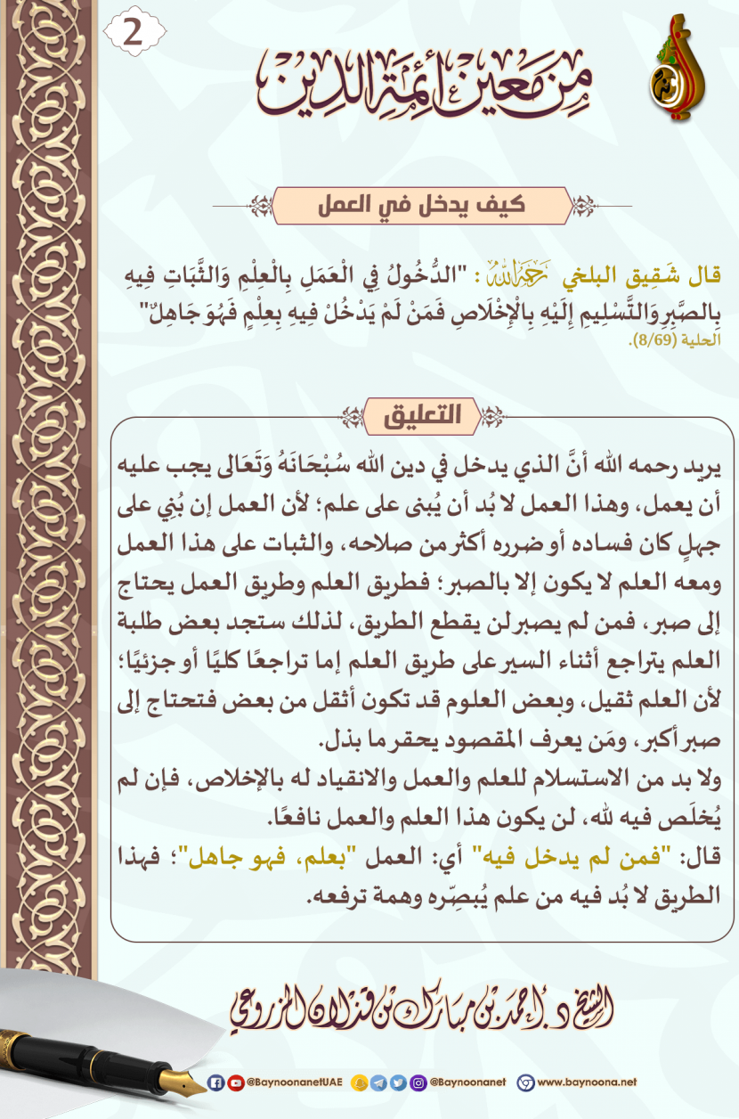 من معين أئمة الدين - (٠٢) كيف يدخل في العمل تاريخ الإضافة: الأربعاء, 02/11/2022 - 14:23 التصنيفات صنف البطاقة: إيمانيات صنف البطاقة: من آثار السلف الشيخ: من إعداد شبكة بينونة سلسلة بطاقات: من معين أئمة الدين حمل السلسلة كاملة: من معين أئمة الدين