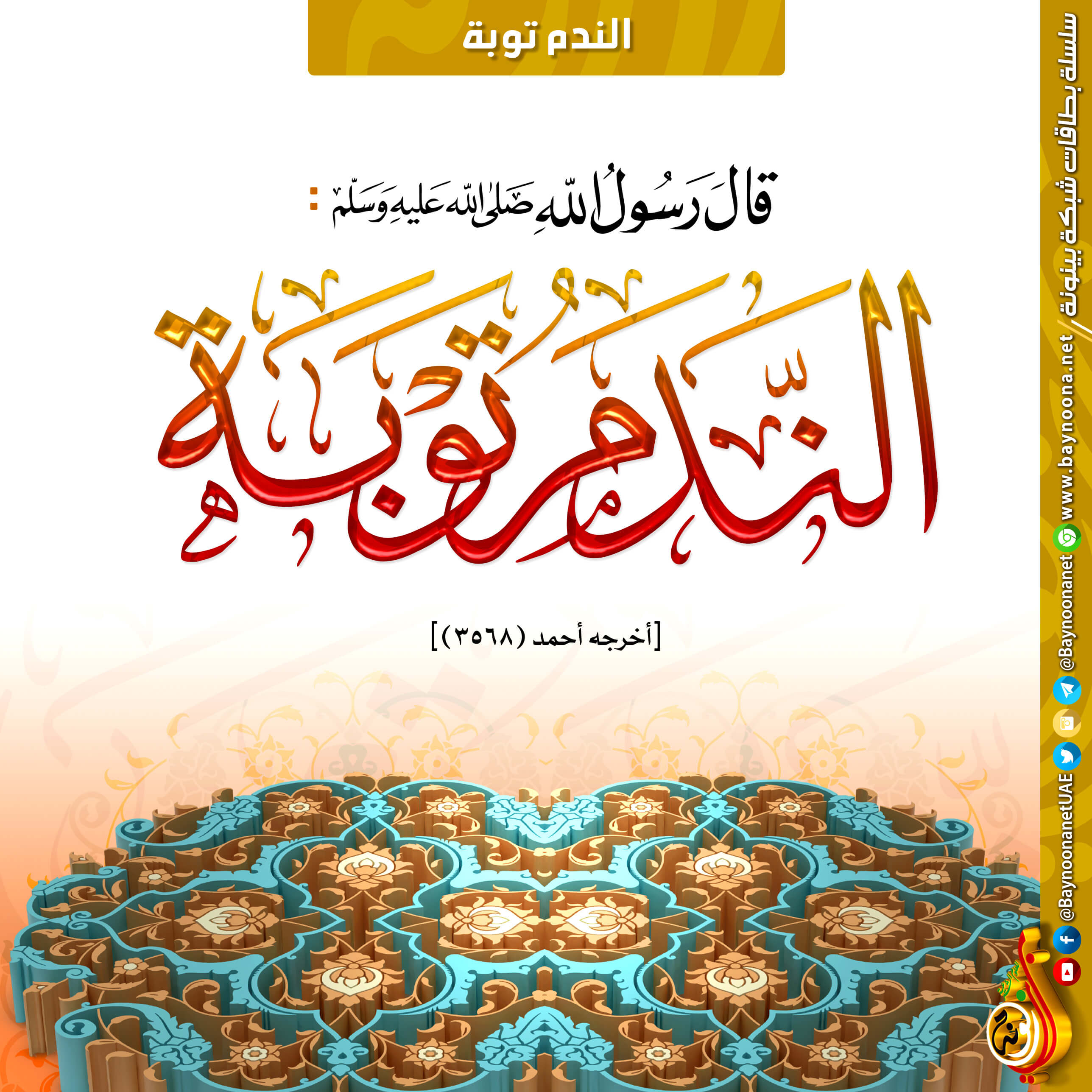 الندم توبة تاريخ الإضافة: الثلاثاء, 06/12/2022 - 21:42 التصنيفات صنف البطاقة: إيمانيات صنف البطاقة: الأخلاق والآداب الشيخ: من إعداد شبكة بينونة
