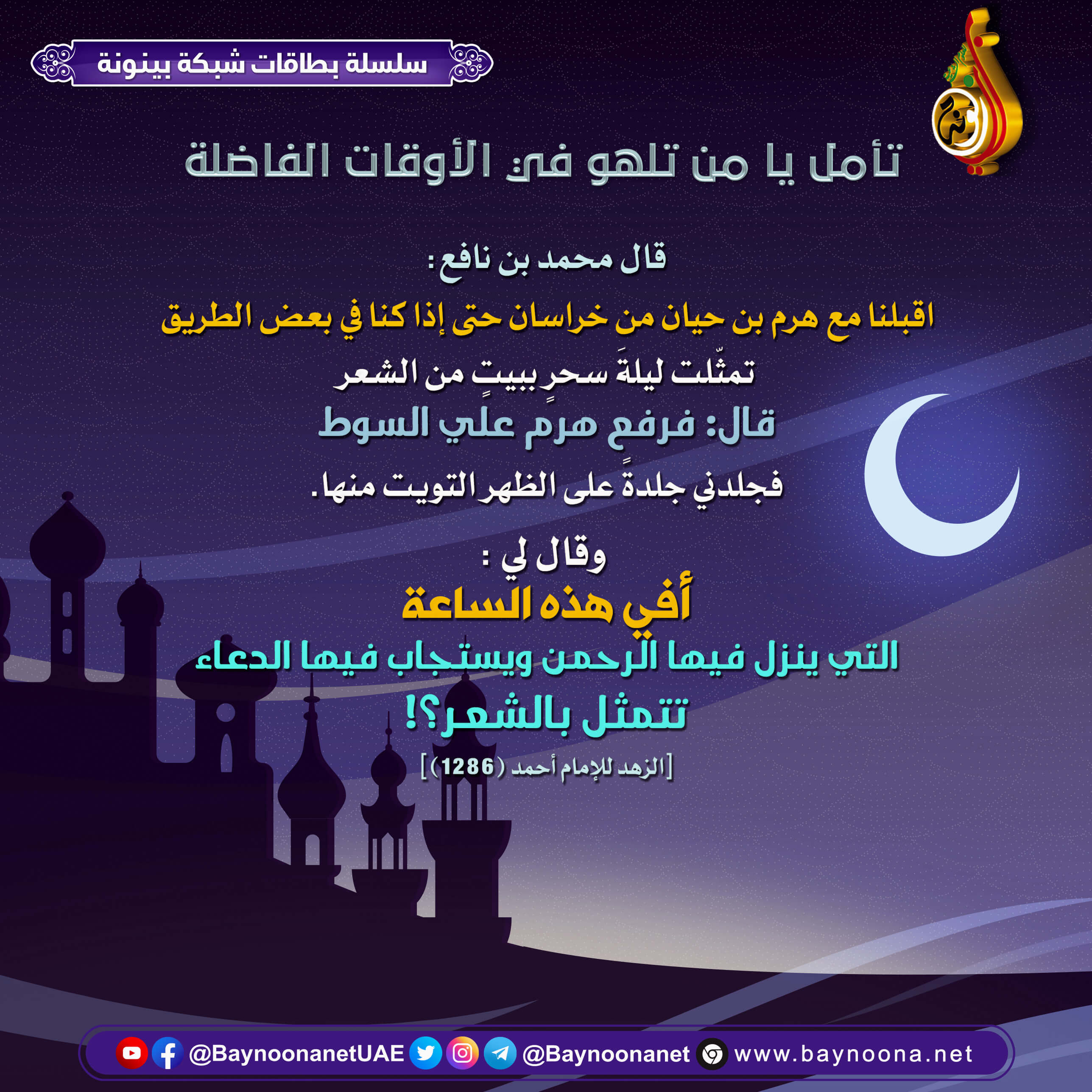 تأمل يا من تلهو في الأوقات الفاضلة تاريخ الإضافة: الجمعة, 09/12/2022 - 23:58 التصنيفات صنف البطاقة: إيمانيات صنف البطاقة: الأخلاق والآداب صنف البطاقة: من آثار السلف الشيخ: من إعداد شبكة بينونة