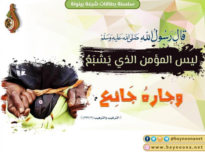ليس المؤمن الذي يشبع وجاره جائع تاريخ الإضافة: الخميس, 29/06/2017 - 13:06 التصنيفات صنف البطاقة: الأخلاق والآداب