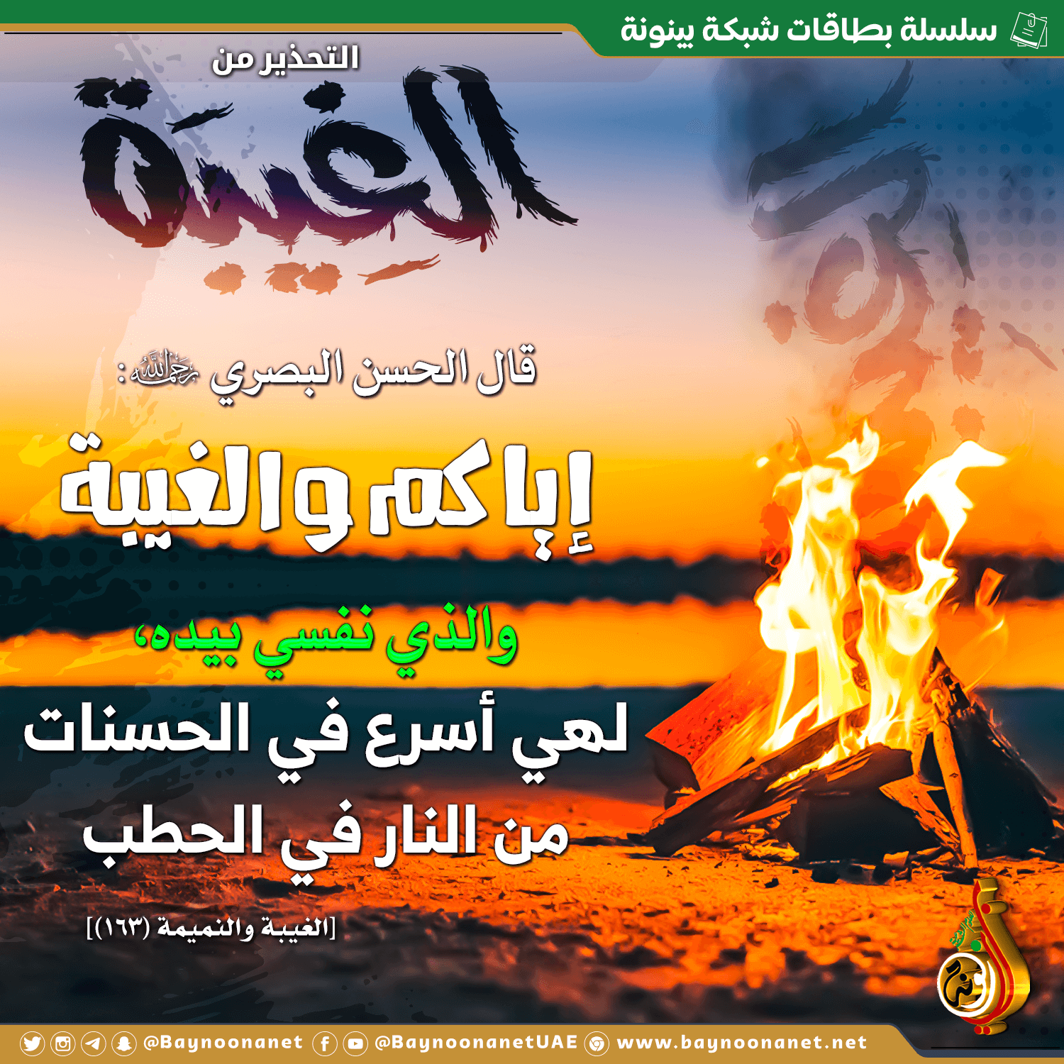 التحذير من الغيبة تاريخ الإضافة: الخميس, 19/01/2023 - 13:29 التصنيفات صنف البطاقة: الأخلاق والآداب صنف البطاقة: التحذير من المعاصي صنف البطاقة: من آثار السلف الشيخ: من إعداد شبكة بينونة