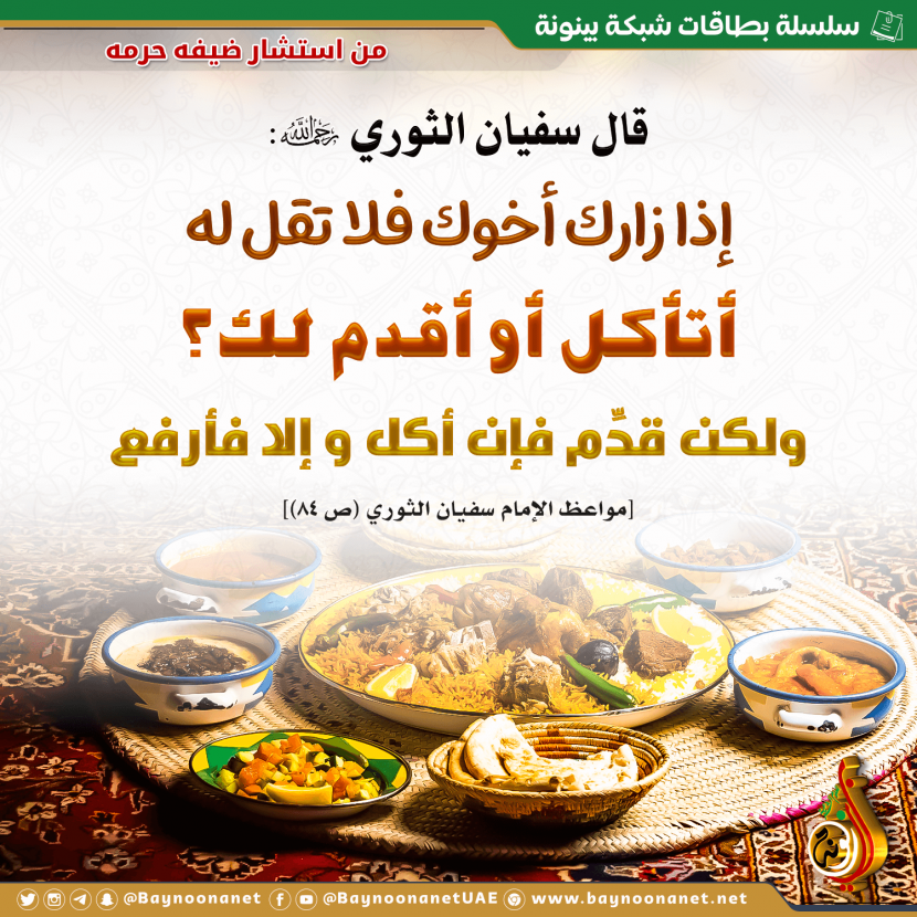 من استشار ضيفه حرمه تاريخ الإضافة: الأحد, 29/01/2023 - 20:42 التصنيفات صنف البطاقة: الأخلاق والآداب الشيخ: من إعداد شبكة بينونة