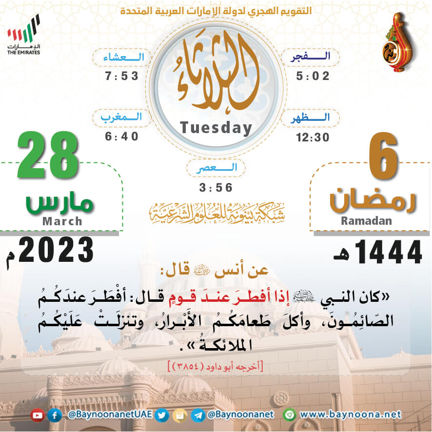 التقويم الهجري لعام ١٤٤٤ هـ - الثلاثاء ٠٦ رمضان تاريخ الإضافة: الإثنين, 27/03/2023 - 22:17 التصنيفات صنف البطاقة: عامة الشيخ: من إعداد شبكة بينونة سلسلة بطاقات: التقويم الهجري لعام ١٤٤٤هـ حمل السلسلة كاملة: التقويم الهجري لعام ١٤٤٤ هـ - شهر المحرم حمل السلسلة كاملة: التقويم الهجري لعام ١٤٤٤ هـ - شهر صفر حمل السلسلة كاملة: التقويم الهجري لعام ١٤٤٤ هـ - شهر ربيع الأول حمل السلسلة كاملة: التقويم الهجري لعام ١٤٤٤ هـ - شهر ربيع الآخر حمل السلسلة كاملة: التقويم الهجري لعام ١٤٤٤ هـ - شهر جمادى الآخرة حمل السلسلة كاملة: التقويم الهجري لعام ١٤٤٤ هـ - شهر شعبان حمل السلسلة كاملة: التقويم الهجري لعام ١٤٤٤ هـ - شهر رمضان حمل السلسلة كاملة: التقويم الهجري لعام ١٤٤٤ هـ - شهر شوال حمل السلسلة كاملة: التقويم الهجري لعام ١٤٤٤ هـ - شهر ذو القعدة حمل السلسلة كاملة: التقويم الهجري لعام ١٤٤٤ هـ - لشهر ذو الحجة