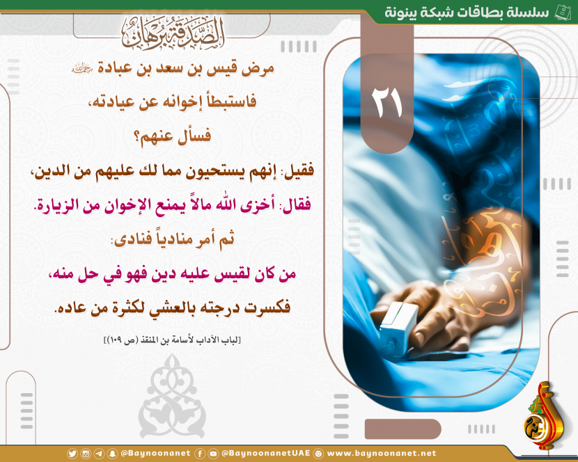 الصدقة برهان (٢١) تاريخ الإضافة: الأربعاء, 29/03/2023 - 22:37 التصنيفات صنف البطاقة: إيمانيات صنف البطاقة: الأخلاق والآداب الشيخ: من إعداد شبكة بينونة سلسلة بطاقات: الصدقة برهان حمل السلسلة كاملة: الصدقة برهان