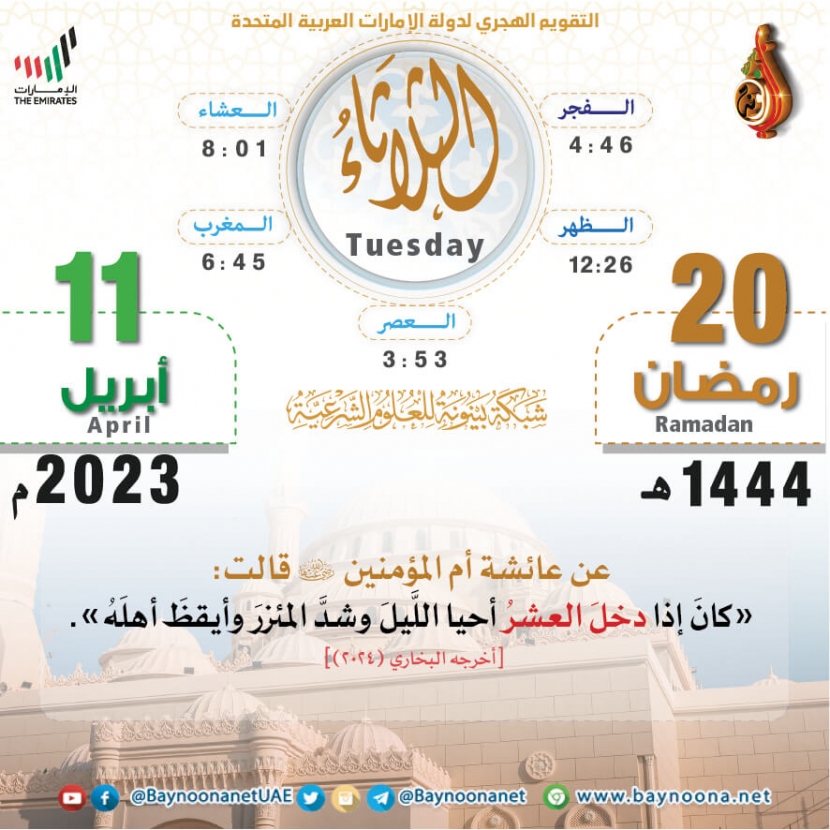 التقويم الهجري لعام ١٤٤٤ هـ - الثلاثاء ٢٠ رمضان تاريخ الإضافة: الإثنين, 10/04/2023 - 22:34 التصنيفات صنف البطاقة: عامة الشيخ: من إعداد شبكة بينونة سلسلة بطاقات: التقويم الهجري لعام ١٤٤٤هـ حمل السلسلة كاملة: التقويم الهجري لعام ١٤٤٤ هـ - شهر المحرم حمل السلسلة كاملة: التقويم الهجري لعام ١٤٤٤ هـ - شهر صفر حمل السلسلة كاملة: التقويم الهجري لعام ١٤٤٤ هـ - شهر ربيع الأول حمل السلسلة كاملة: التقويم الهجري لعام ١٤٤٤ هـ - شهر ربيع الآخر حمل السلسلة كاملة: التقويم الهجري لعام ١٤٤٤ هـ - شهر جمادى الآخرة حمل السلسلة كاملة: التقويم الهجري لعام ١٤٤٤ هـ - شهر شعبان حمل السلسلة كاملة: التقويم الهجري لعام ١٤٤٤ هـ - شهر رمضان حمل السلسلة كاملة: التقويم الهجري لعام ١٤٤٤ هـ - شهر شوال حمل السلسلة كاملة: التقويم الهجري لعام ١٤٤٤ هـ - شهر ذو القعدة حمل السلسلة كاملة: التقويم الهجري لعام ١٤٤٤ هـ - لشهر ذو الحجة