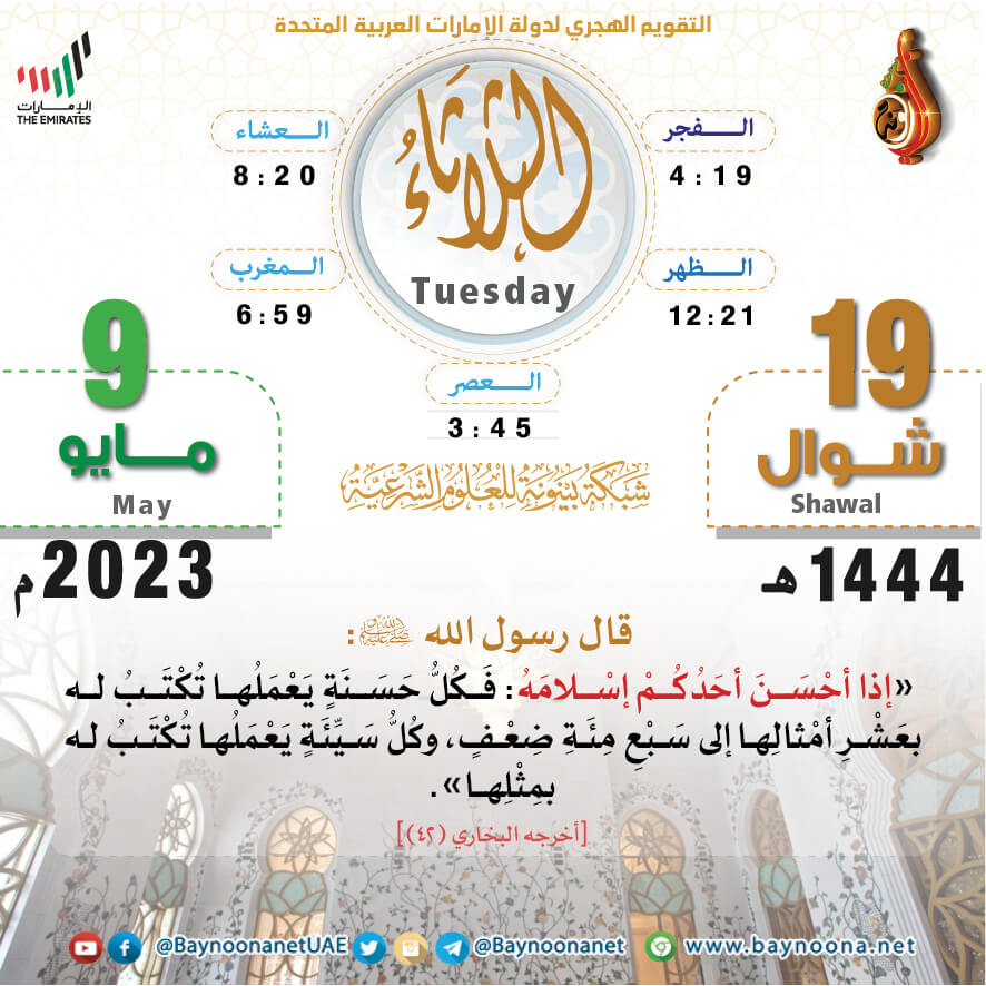 التقويم الهجري لعام ١٤٤٤ هـ - الثلاثاء ١٩ شوال تاريخ الإضافة: الإثنين, 08/05/2023 - 21:10 التصنيفات صنف البطاقة: عامة الشيخ: من إعداد شبكة بينونة سلسلة بطاقات: التقويم الهجري لعام ١٤٤٤هـ حمل السلسلة كاملة: التقويم الهجري لعام ١٤٤٤ هـ - شهر المحرم حمل السلسلة كاملة: التقويم الهجري لعام ١٤٤٤ هـ - شهر صفر حمل السلسلة كاملة: التقويم الهجري لعام ١٤٤٤ هـ - شهر ربيع الأول حمل السلسلة كاملة: التقويم الهجري لعام ١٤٤٤ هـ - شهر ربيع الآخر حمل السلسلة كاملة: التقويم الهجري لعام ١٤٤٤ هـ - شهر جمادى الآخرة حمل السلسلة كاملة: التقويم الهجري لعام ١٤٤٤ هـ - شهر شعبان حمل السلسلة كاملة: التقويم الهجري لعام ١٤٤٤ هـ - شهر رمضان حمل السلسلة كاملة: التقويم الهجري لعام ١٤٤٤ هـ - شهر شوال حمل السلسلة كاملة: التقويم الهجري لعام ١٤٤٤ هـ - شهر ذو القعدة حمل السلسلة كاملة: التقويم الهجري لعام ١٤٤٤ هـ - لشهر ذو الحجة