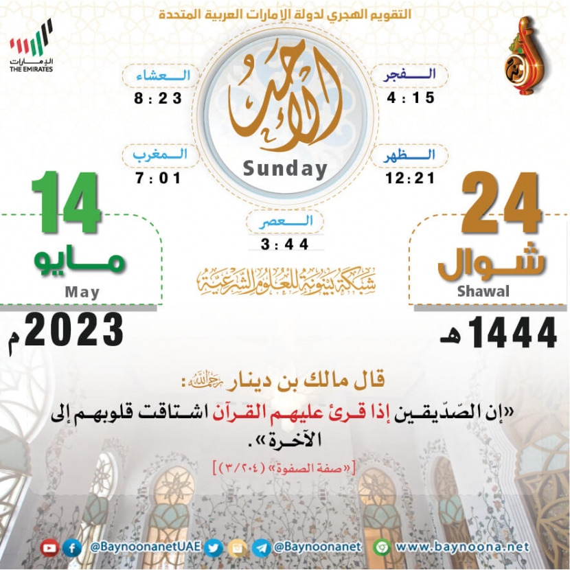 التقويم الهجري لعام ١٤٤٤ هـ - الأحد ٢٤ شوال تاريخ الإضافة: السبت, 13/05/2023 - 22:38 التصنيفات صنف البطاقة: عامة الشيخ: من إعداد شبكة بينونة سلسلة بطاقات: التقويم الهجري لعام ١٤٤٤هـ حمل السلسلة كاملة: التقويم الهجري لعام ١٤٤٤ هـ - شهر المحرم حمل السلسلة كاملة: التقويم الهجري لعام ١٤٤٤ هـ - شهر صفر حمل السلسلة كاملة: التقويم الهجري لعام ١٤٤٤ هـ - شهر ربيع الأول حمل السلسلة كاملة: التقويم الهجري لعام ١٤٤٤ هـ - شهر ربيع الآخر حمل السلسلة كاملة: التقويم الهجري لعام ١٤٤٤ هـ - شهر جمادى الآخرة حمل السلسلة كاملة: التقويم الهجري لعام ١٤٤٤ هـ - شهر شعبان حمل السلسلة كاملة: التقويم الهجري لعام ١٤٤٤ هـ - شهر رمضان حمل السلسلة كاملة: التقويم الهجري لعام ١٤٤٤ هـ - شهر شوال حمل السلسلة كاملة: التقويم الهجري لعام ١٤٤٤ هـ - شهر ذو القعدة حمل السلسلة كاملة: التقويم الهجري لعام ١٤٤٤ هـ - لشهر ذو الحجة
