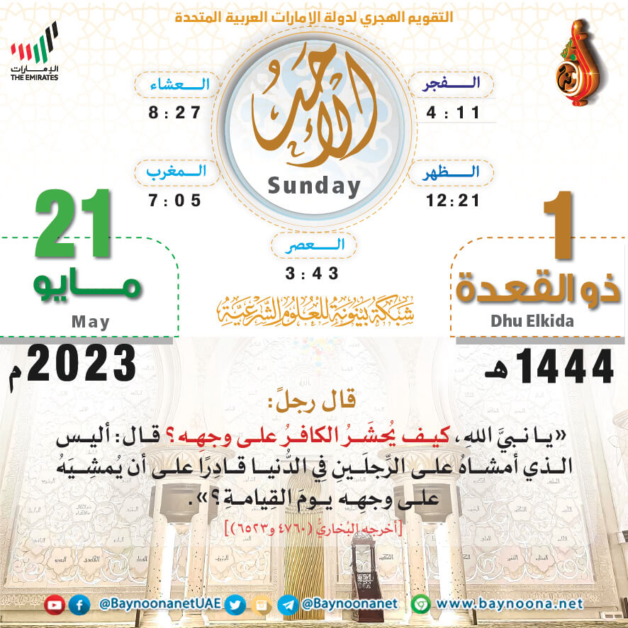 التقويم الهجري لعام ١٤٤٤ هـ - الأحد ٠١ ذو القعدة تاريخ الإضافة: الأحد, 21/05/2023 - 01:04 التصنيفات صنف البطاقة: عامة الشيخ: من إعداد شبكة بينونة سلسلة بطاقات: التقويم الهجري لعام ١٤٤٤هـ حمل السلسلة كاملة: التقويم الهجري لعام ١٤٤٤ هـ - شهر المحرم حمل السلسلة كاملة: التقويم الهجري لعام ١٤٤٤ هـ - شهر صفر حمل السلسلة كاملة: التقويم الهجري لعام ١٤٤٤ هـ - شهر ربيع الأول حمل السلسلة كاملة: التقويم الهجري لعام ١٤٤٤ هـ - شهر ربيع الآخر حمل السلسلة كاملة: التقويم الهجري لعام ١٤٤٤ هـ - شهر جمادى الآخرة حمل السلسلة كاملة: التقويم الهجري لعام ١٤٤٤ هـ - شهر شعبان حمل السلسلة كاملة: التقويم الهجري لعام ١٤٤٤ هـ - شهر رمضان حمل السلسلة كاملة: التقويم الهجري لعام ١٤٤٤ هـ - شهر شوال حمل السلسلة كاملة: التقويم الهجري لعام ١٤٤٤ هـ - شهر ذو القعدة حمل السلسلة كاملة: التقويم الهجري لعام ١٤٤٤ هـ - لشهر ذو الحجة