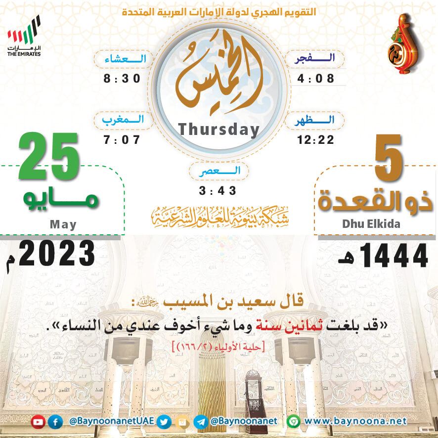التقويم الهجري لعام ١٤٤٤ هـ - الخميس ٠٥ ذو القعدة تاريخ الإضافة: الأربعاء, 24/05/2023 - 22:23 التصنيفات صنف البطاقة: عامة الشيخ: من إعداد شبكة بينونة سلسلة بطاقات: التقويم الهجري لعام ١٤٤٤هـ حمل السلسلة كاملة: التقويم الهجري لعام ١٤٤٤ هـ - شهر المحرم حمل السلسلة كاملة: التقويم الهجري لعام ١٤٤٤ هـ - شهر صفر حمل السلسلة كاملة: التقويم الهجري لعام ١٤٤٤ هـ - شهر ربيع الأول حمل السلسلة كاملة: التقويم الهجري لعام ١٤٤٤ هـ - شهر ربيع الآخر حمل السلسلة كاملة: التقويم الهجري لعام ١٤٤٤ هـ - شهر جمادى الآخرة حمل السلسلة كاملة: التقويم الهجري لعام ١٤٤٤ هـ - شهر شعبان حمل السلسلة كاملة: التقويم الهجري لعام ١٤٤٤ هـ - شهر رمضان حمل السلسلة كاملة: التقويم الهجري لعام ١٤٤٤ هـ - شهر شوال حمل السلسلة كاملة: التقويم الهجري لعام ١٤٤٤ هـ - شهر ذو القعدة حمل السلسلة كاملة: التقويم الهجري لعام ١٤٤٤ هـ - لشهر ذو الحجة