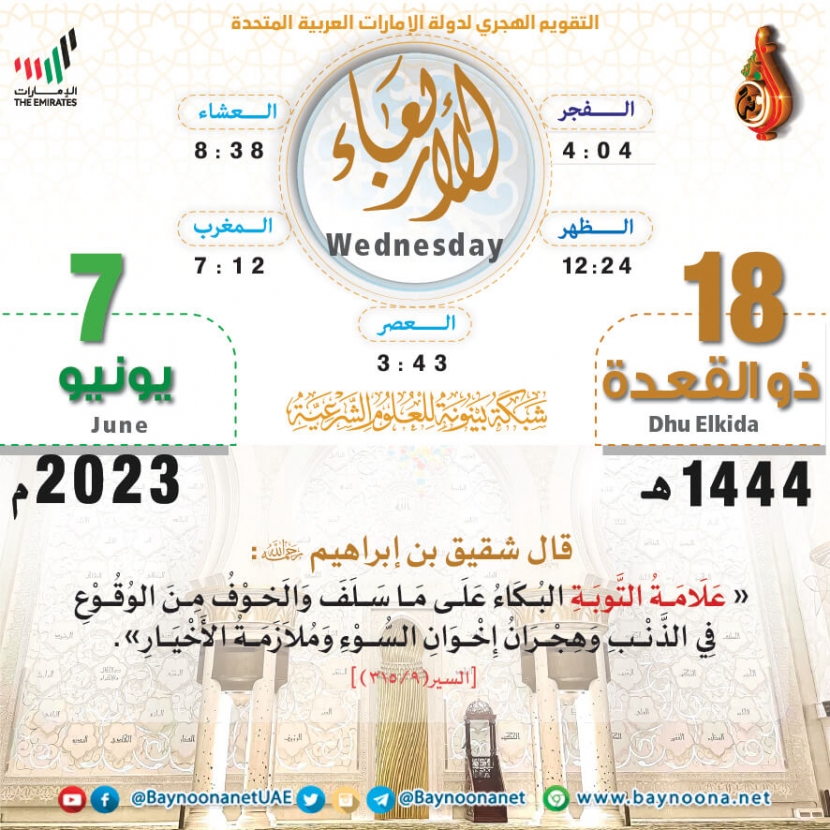 التقويم الهجري لعام ١٤٤٤ هـ - الأربعاء ١٨ ذو القعدة تاريخ الإضافة: الثلاثاء, 06/06/2023 - 20:11 التصنيفات صنف البطاقة: عامة الشيخ: من إعداد شبكة بينونة سلسلة بطاقات: التقويم الهجري لعام ١٤٤٤هـ حمل السلسلة كاملة: التقويم الهجري لعام ١٤٤٤ هـ - شهر المحرم حمل السلسلة كاملة: التقويم الهجري لعام ١٤٤٤ هـ - شهر صفر حمل السلسلة كاملة: التقويم الهجري لعام ١٤٤٤ هـ - شهر ربيع الأول حمل السلسلة كاملة: التقويم الهجري لعام ١٤٤٤ هـ - شهر ربيع الآخر حمل السلسلة كاملة: التقويم الهجري لعام ١٤٤٤ هـ - شهر جمادى الآخرة حمل السلسلة كاملة: التقويم الهجري لعام ١٤٤٤ هـ - شهر شعبان حمل السلسلة كاملة: التقويم الهجري لعام ١٤٤٤ هـ - شهر رمضان حمل السلسلة كاملة: التقويم الهجري لعام ١٤٤٤ هـ - شهر شوال حمل السلسلة كاملة: التقويم الهجري لعام ١٤٤٤ هـ - شهر ذو القعدة حمل السلسلة كاملة: التقويم الهجري لعام ١٤٤٤ هـ - لشهر ذو الحجة