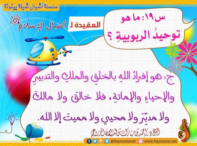 العقيدة لأشبال الإسلام - (س19) : ما هو توحيد الربوبية؟ تاريخ الإضافة: السبت, 22/07/2017 - 14:30 التصنيفات صنف البطاقة: إيمانيات سلسلة بطاقات: العقيدة لأشبال الإسلام حمل السلسلة كاملة: العقيدة لأشبال الإسلام