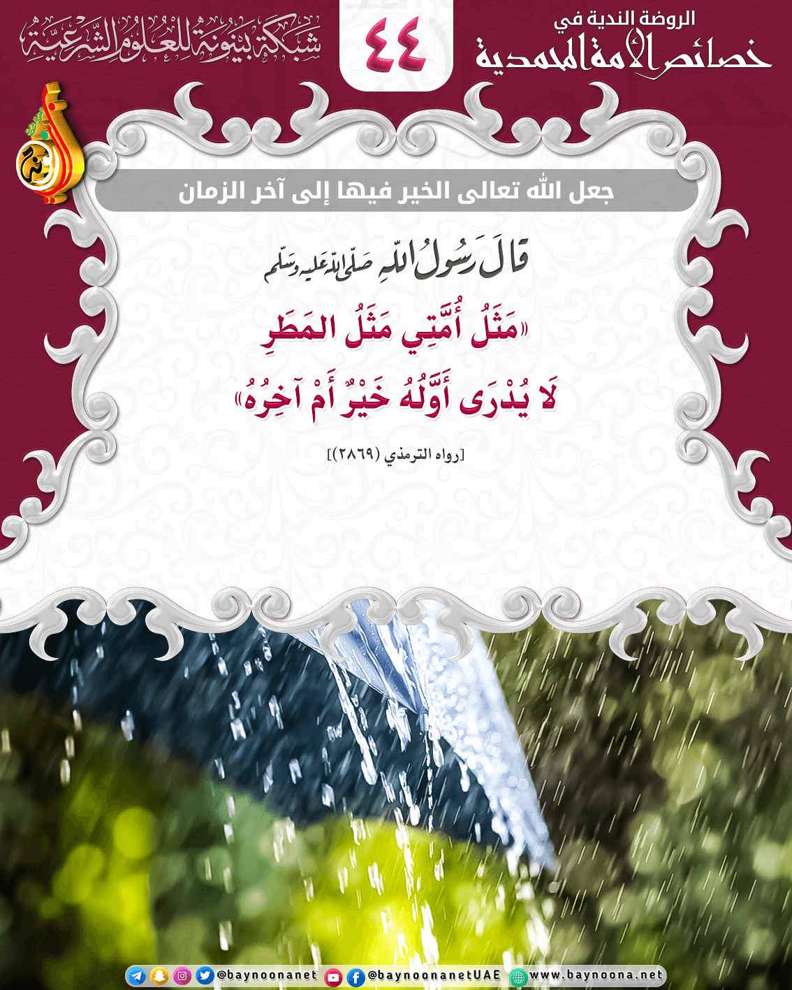 الروضة الندية في خصائص الأمة المحمدية - (٤٤) جعل الله تعالى الخير فيها إلى آخر الزمان تاريخ الإضافة: الأحد, 20/08/2023 - 00:36 التصنيفات صنف البطاقة: إيمانيات الشيخ: من إعداد شبكة بينونة سلسلة بطاقات: الروضة الندية في خصائص الأمة المحمدية حمل السلسلة كاملة: الروضة الندية في خصائص الأمة المحمدية