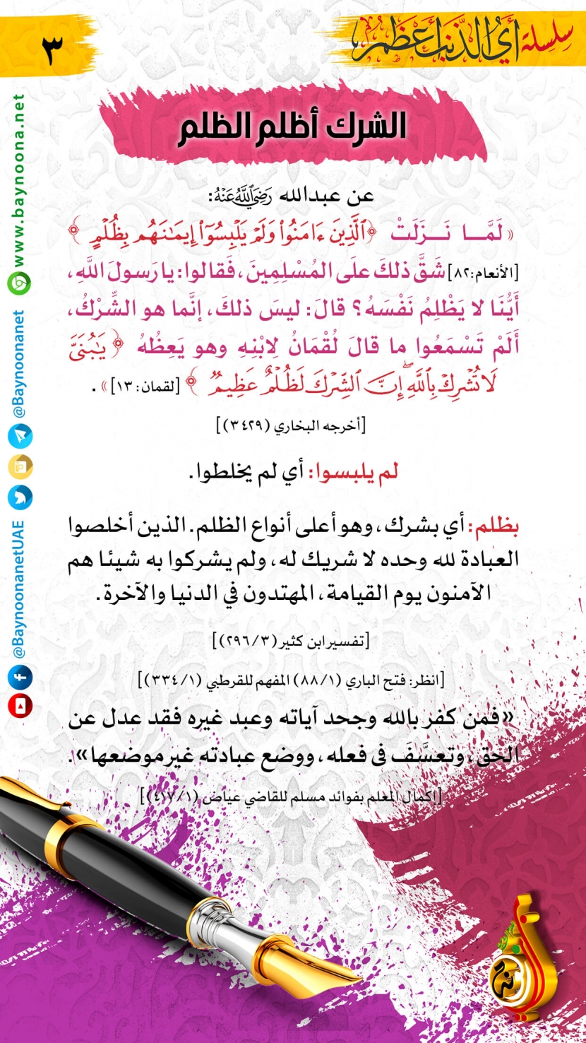 أي الذنب أعظم - (٠٣) الشرك أظلم الظلم تاريخ الإضافة: الخميس, 24/08/2023 - 21:05 التصنيفات صنف البطاقة: إيمانيات صنف البطاقة: التحذير من المعاصي الشيخ: من إعداد شبكة بينونة سلسلة بطاقات: أي الذنب أعظم حمل السلسلة كاملة: أي الذنب أعظم