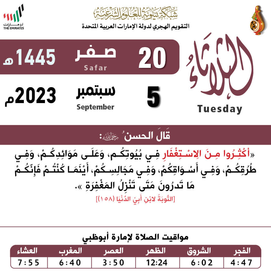 التقويم الهجري لعام ١٤٤٤ هـ - الثلاثاء ٢٠ صفر تاريخ الإضافة: الإثنين, 04/09/2023 - 21:26 التصنيفات صنف البطاقة: عامة الشيخ: من إعداد شبكة بينونة سلسلة بطاقات: التقويم الهجري لعام ١٤٤٥هـ حمل السلسلة كاملة: التقويم الهجري لعام ١٤٤٥ هـ - شهر المحرم حمل السلسلة كاملة: التقويم الهجري لعام ١٤٤٥ هـ - شهر صفر حمل السلسلة كاملة: التقويم الهجري لعام ١٤٤٥ هـ - شهر ربيع الأول حمل السلسلة كاملة: التقويم الهجري لعام ١٤٤٥ هـ - شهر ربيع الثاني حمل السلسلة كاملة: التقويم الهجري لعام ١٤٤٥ هـ - شهر جمادى الأولى حمل السلسلة كاملة: التقويم الهجري لعام ١٤٤٥ هـ - شهر جمادى الآخرة