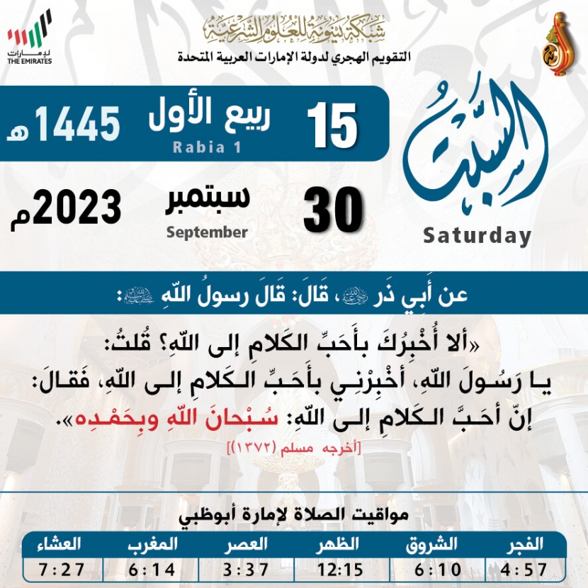 التقويم الهجري لعام ١٤٤٥ هـ - السبت ١٥ ربيع الأول تاريخ الإضافة: الجمعة, 29/09/2023 - 21:18 التصنيفات صنف البطاقة: عامة الشيخ: من إعداد شبكة بينونة سلسلة بطاقات: التقويم الهجري لعام ١٤٤٥هـ حمل السلسلة كاملة: التقويم الهجري لعام ١٤٤٥ هـ - شهر المحرم حمل السلسلة كاملة: التقويم الهجري لعام ١٤٤٥ هـ - شهر صفر حمل السلسلة كاملة: التقويم الهجري لعام ١٤٤٥ هـ - شهر ربيع الأول حمل السلسلة كاملة: التقويم الهجري لعام ١٤٤٥ هـ - شهر ربيع الثاني حمل السلسلة كاملة: التقويم الهجري لعام ١٤٤٥ هـ - شهر جمادى الأولى حمل السلسلة كاملة: التقويم الهجري لعام ١٤٤٥ هـ - شهر جمادى الآخرة