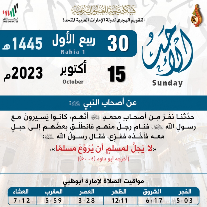 التقويم الهجري لعام ١٤٤٥ هـ - الأحد ٣٠ ربيع الأول تاريخ الإضافة: السبت, 14/10/2023 - 21:41 التصنيفات صنف البطاقة: عامة الشيخ: من إعداد شبكة بينونة سلسلة بطاقات: التقويم الهجري لعام ١٤٤٥هـ حمل السلسلة كاملة: التقويم الهجري لعام ١٤٤٥ هـ - شهر المحرم حمل السلسلة كاملة: التقويم الهجري لعام ١٤٤٥ هـ - شهر صفر حمل السلسلة كاملة: التقويم الهجري لعام ١٤٤٥ هـ - شهر ربيع الأول حمل السلسلة كاملة: التقويم الهجري لعام ١٤٤٥ هـ - شهر ربيع الثاني حمل السلسلة كاملة: التقويم الهجري لعام ١٤٤٥ هـ - شهر جمادى الأولى حمل السلسلة كاملة: التقويم الهجري لعام ١٤٤٥ هـ - شهر جمادى الآخرة