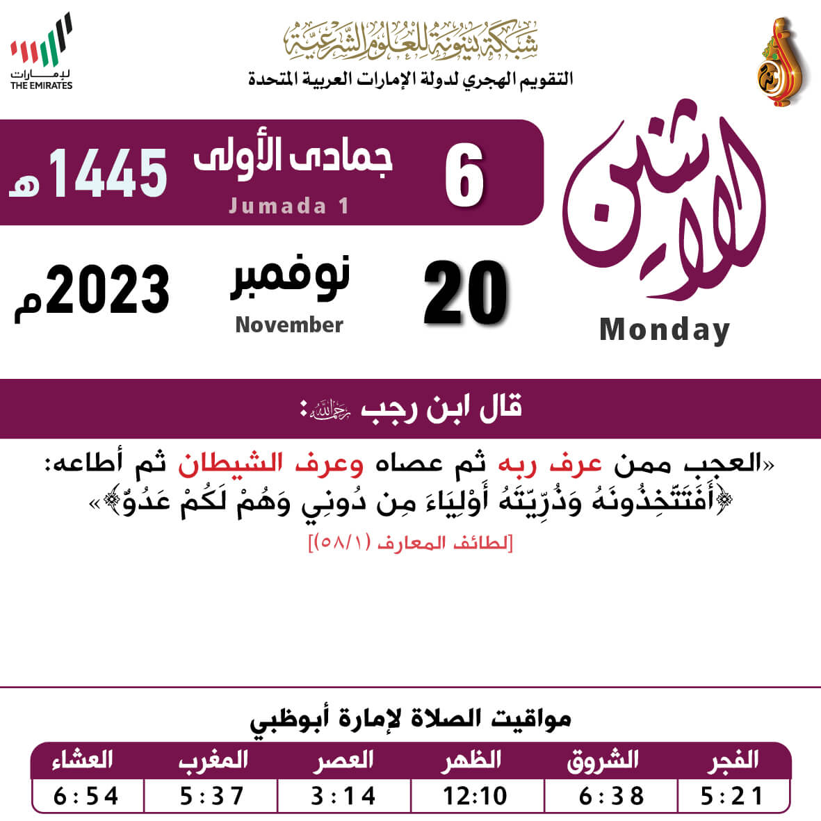 التقويم الهجري لعام ١٤٤٥ هـ - الاثنين ٠٦ جمادى الأولى تاريخ الإضافة: الأحد, 19/11/2023 - 21:46 التصنيفات صنف البطاقة: عامة الشيخ: من إعداد شبكة بينونة سلسلة بطاقات: التقويم الهجري لعام ١٤٤٥هـ حمل السلسلة كاملة: التقويم الهجري لعام ١٤٤٥ هـ - شهر المحرم حمل السلسلة كاملة: التقويم الهجري لعام ١٤٤٥ هـ - شهر صفر حمل السلسلة كاملة: التقويم الهجري لعام ١٤٤٥ هـ - شهر ربيع الأول حمل السلسلة كاملة: التقويم الهجري لعام ١٤٤٥ هـ - شهر ربيع الثاني حمل السلسلة كاملة: التقويم الهجري لعام ١٤٤٥ هـ - شهر جمادى الأولى حمل السلسلة كاملة: التقويم الهجري لعام ١٤٤٥ هـ - شهر جمادى الآخرة