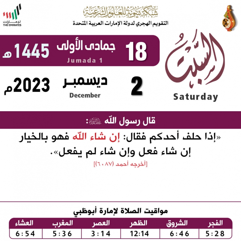 التقويم الهجري لعام ١٤٤٥ هـ - السبت ١٨ جمادى الأولى تاريخ الإضافة: الجمعة, 01/12/2023 - 21:29 التصنيفات صنف البطاقة: عامة الشيخ: من إعداد شبكة بينونة سلسلة بطاقات: التقويم الهجري لعام ١٤٤٥هـ حمل السلسلة كاملة: التقويم الهجري لعام ١٤٤٥ هـ - شهر المحرم حمل السلسلة كاملة: التقويم الهجري لعام ١٤٤٥ هـ - شهر صفر حمل السلسلة كاملة: التقويم الهجري لعام ١٤٤٥ هـ - شهر ربيع الأول حمل السلسلة كاملة: التقويم الهجري لعام ١٤٤٥ هـ - شهر ربيع الثاني حمل السلسلة كاملة: التقويم الهجري لعام ١٤٤٥ هـ - شهر جمادى الأولى حمل السلسلة كاملة: التقويم الهجري لعام ١٤٤٥ هـ - شهر جمادى الآخرة