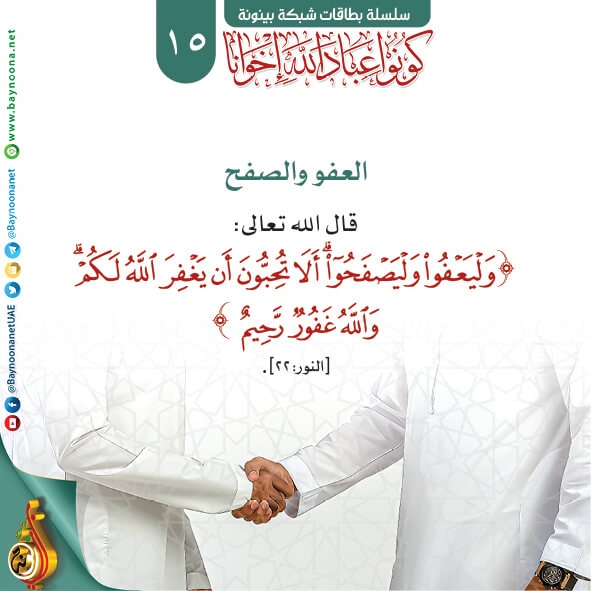 كونوا عباد الله إخوانا - (١٥) العفو والصفح تاريخ الإضافة: الخميس, 07/12/2023 - 21:33 التصنيفات صنف البطاقة: الأخلاق والآداب الشيخ: من إعداد شبكة بينونة سلسلة بطاقات: كونوا عباد الله إخوانا