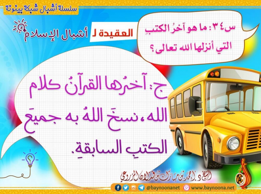 العقيدة لأشبال الإسلام - (س34) : ما هو آخر الكتب التي أنزلها الله تعالى ؟ تاريخ الإضافة: الإثنين, 07/08/2017 - 11:29 التصنيفات صنف البطاقة: إيمانيات سلسلة بطاقات: العقيدة لأشبال الإسلام حمل السلسلة كاملة: العقيدة لأشبال الإسلام