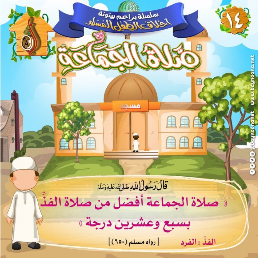 سلسلة براعم بينونة - أخلاقُ الطفل المسلم: (14) صلاة الجماعة تاريخ الإضافة: الثلاثاء, 12/12/2017 - 11:19 التصنيفات صنف البطاقة: الأخلاق والآداب صنف البطاقة: العبادات الشيخ: من إعداد شبكة بينونة سلسلة بطاقات: أخلاقُ الطفل المسلم حمل السلسلة كاملة: أخلاق الطفل المسلم