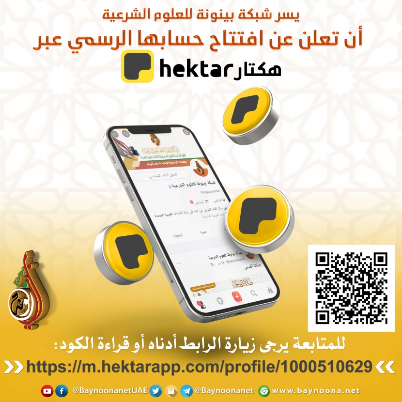 الإعلان الرسمي عن افتتاح حساب شبكة بينونة للعلوم الشرعية على ( هكتار - hektar ) تاريخ الإضافة: الإثنين, 22/08/2022 - 21:49