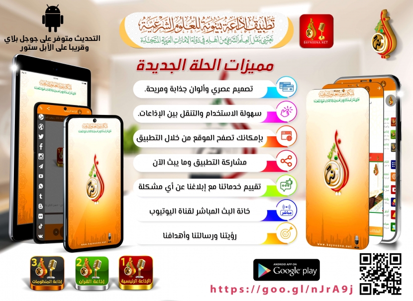 الإعلان الرسمي عن: تحديث تطبيق إذاعة بينونة للعلوم الشرعية لنظام Android تاريخ الإضافة: الجمعة, 29/10/2021 - 19:30