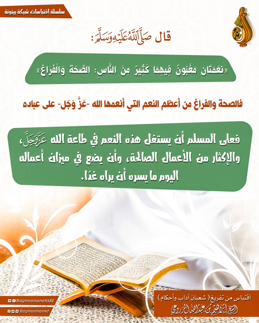 نعمتان مغبون فيهما كثير من الناس ... تاريخ الإضافة: الإثنين, 01/06/2020 - 14:12 التصنيفات الشيخ: إبراهيم بن عبد الله المزروعي