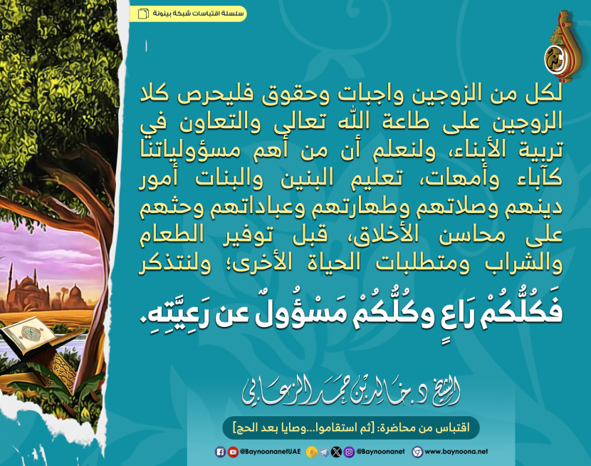 لكل من الزوجين واجبات وحقوق... تاريخ الإضافة: الأربعاء, 13/12/2023 - 19:08 التصنيفات الشيخ: د. خالد بن حمد الزعابي