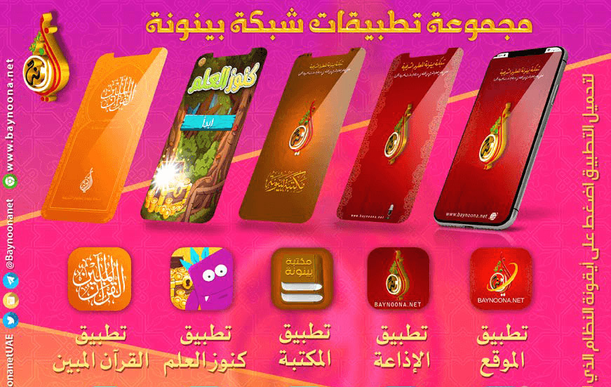 تطبيق القرآن المبين (iOS) لعبة كنوز العلم (iOS) تطبيق مكتبة بينونة (iOS) تطبيق إذاعة بينونة (iOS) تطبيق موقع بينونة (iOS)