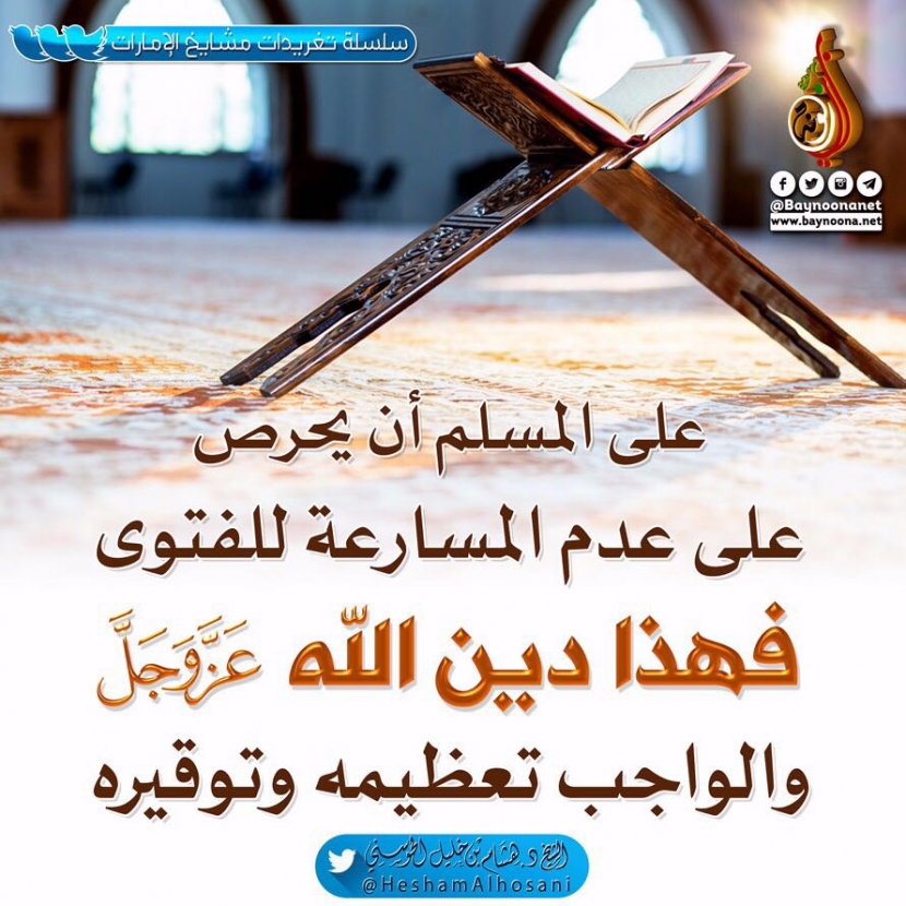 على المسلم أن يحرص على عدم المسارعة للفتوى تاريخ الإضافة: الجمعة, 30/06/2017 - 19:12 التصنيفات الشيخ: د. هشام بن خليل الحوسني