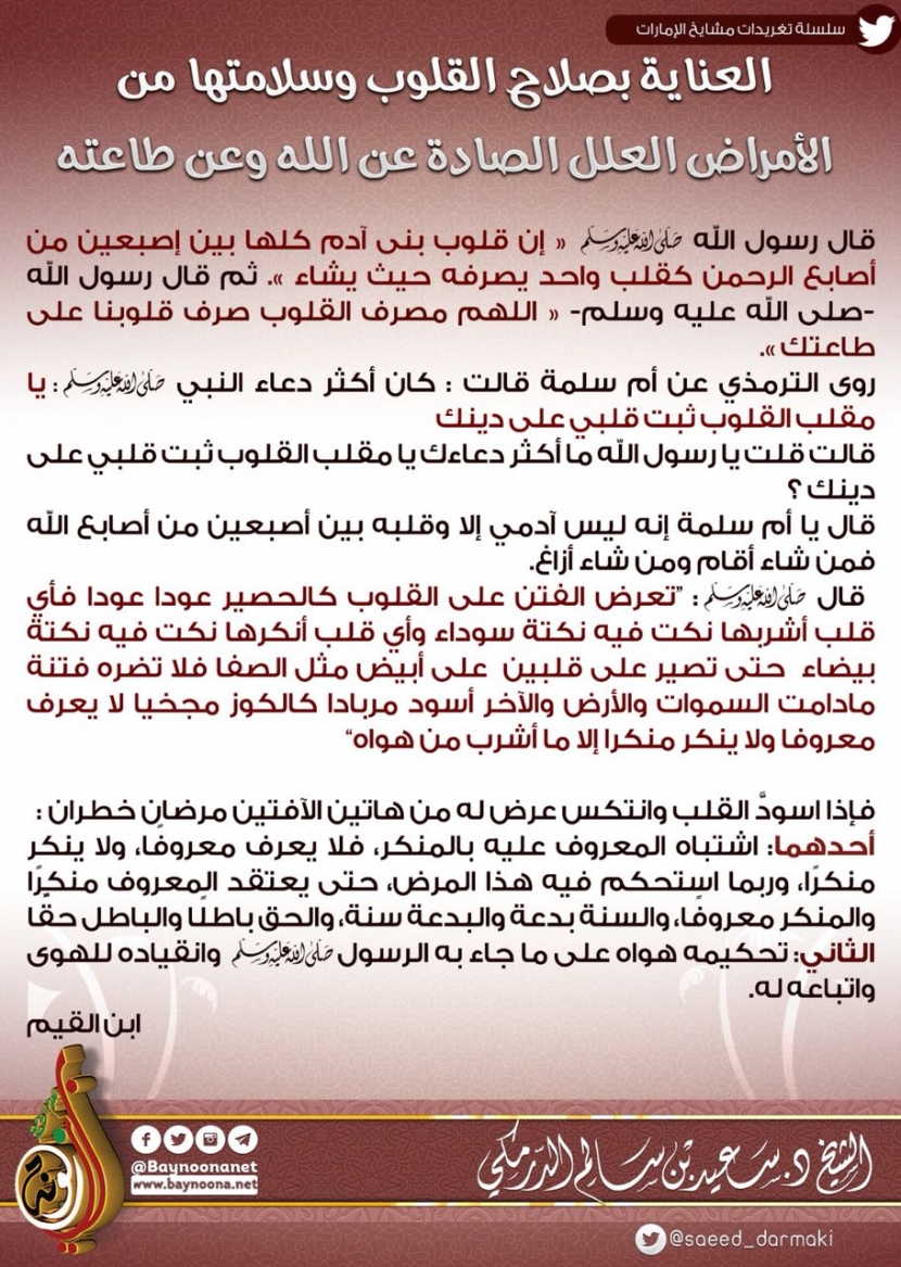 العناية بصلاح القلوب وسلامتها من الأمراض... تاريخ الإضافة: السبت, 10/03/2018 - 11:34 التصنيفات الشيخ: د. سعيد بن سالم الدرمكي
