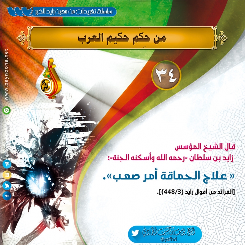 من معين زايد الخير - (34) من حكم حكيم العرب تاريخ الإضافة: السبت, 07/04/2018 - 17:28 التصنيفات الشيخ: يوسف بن حسن الحمادي سلسلة تغريدات: من معين زايد الخير