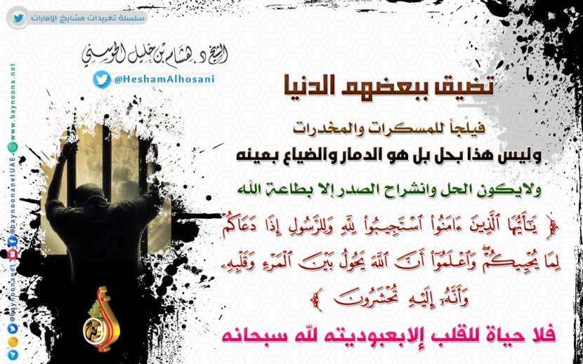 تضيق ببعضهم الدنيا فيلجأ للمسكرات والمخدرات... تاريخ الإضافة: الأحد, 25/11/2018 - 12:12 التصنيفات الشيخ: د. هشام بن خليل الحوسني