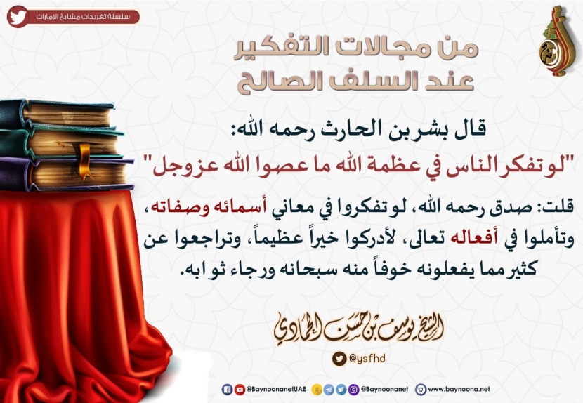 من مجالات التفكير عند السلف الصالح تاريخ الإضافة: الثلاثاء, 18/06/2019 - 18:40 التصنيفات الشيخ: يوسف بن حسن الحمادي