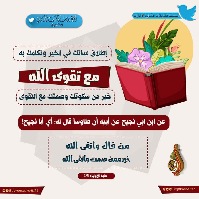إطلاقك لسانك في الخير وتكلمك به مع تقوى الله... تاريخ الإضافة: الثلاثاء, 20/08/2019 - 15:27 التصنيفات الشيخ: يوسف بن حسن الحمادي