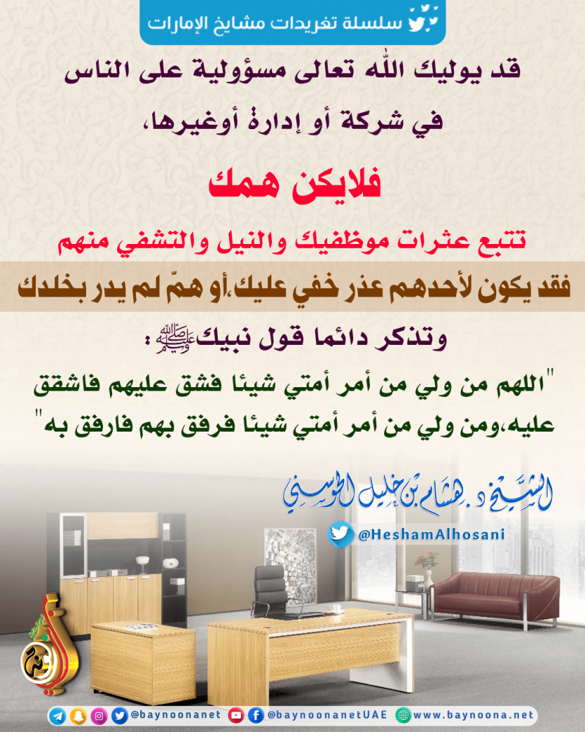 قد يوليك الله تعالى مسؤولية على الناس... تاريخ الإضافة: الخميس, 05/09/2019 - 02:09 التصنيفات الشيخ: د. هشام بن خليل الحوسني