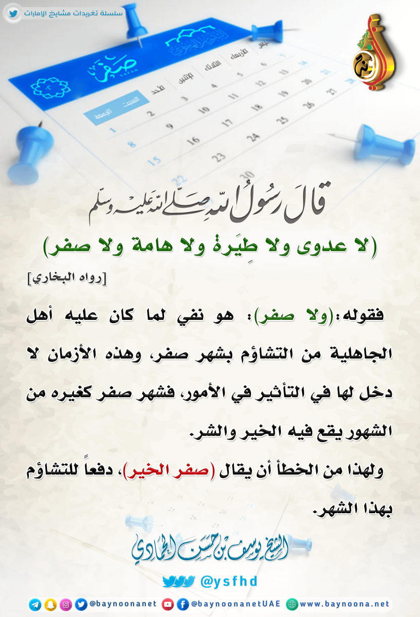 قال ﷺ: (لا عدوى ولا طيرة ولا هامة ولا صفر) تاريخ الإضافة: الخميس, 03/10/2019 - 01:52 التصنيفات الشيخ: يوسف بن حسن الحمادي