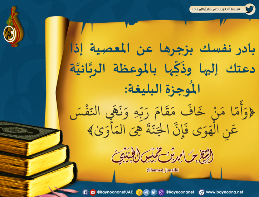 بادر نفسك بزجرها عن المعصية... تاريخ الإضافة: الخميس, 31/10/2019 - 19:33 التصنيفات الشيخ: حامد بن خميس الجنيبي